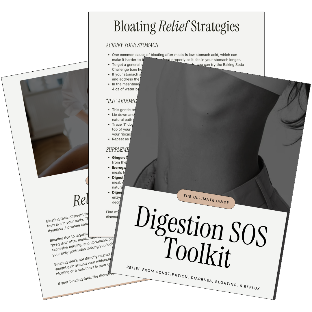 A 20-Page Bundle packed with practical tips, supplement recommendations, and simple strategies you can implement TODAY to eliminate stubborn digestive symptoms so you can feel better FAST